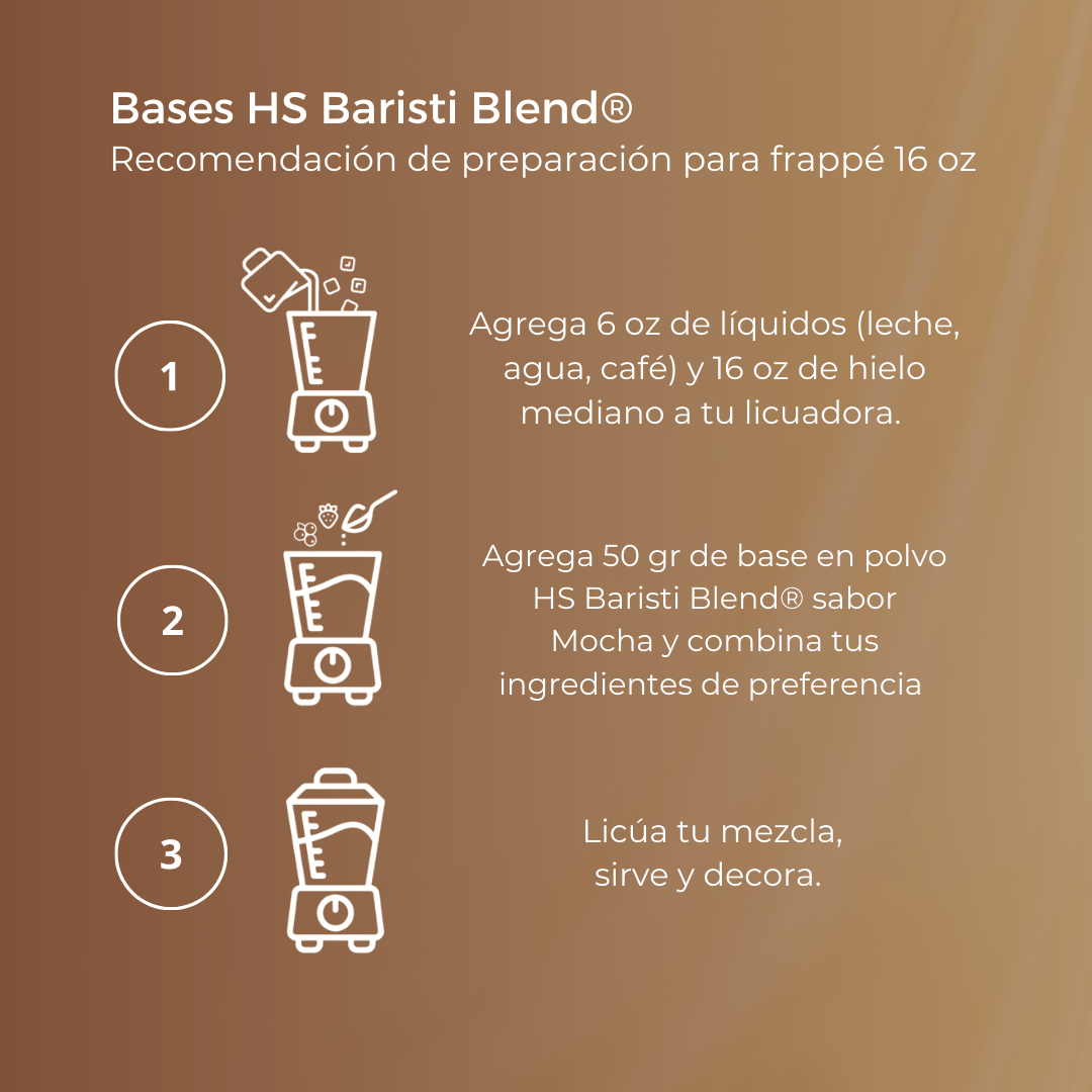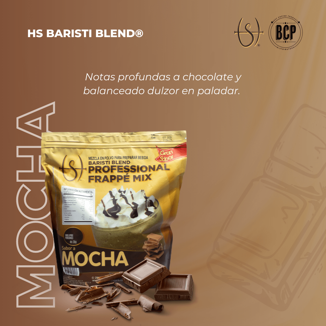 ¿Quieres hacer los frappés más deliciosos y cremosos que hayas probado? ¡Entonces debes probar la base para frappé sabor Mocha de HS Baristi Blend®!